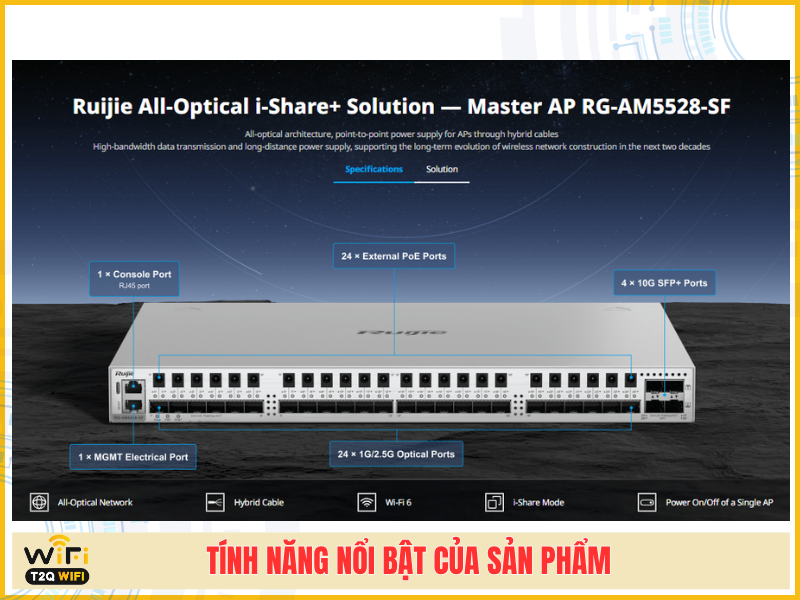 Giải pháp WiFi thế hệ mới không còn bị giới hạn bởi cáp đồng – Ruijie RG-AM5528-SF mang đến kiến trúc mạng quang toàn diện, tốc độ cực cao, cấp nguồn từ xa và khả năng triển khai linh hoạt cho doanh nghiệp hiện đại. Hãy cùng T2QWIFI tìm hiểu thêm về sản phẩm này qua bài viết dưới đây nhé!!!