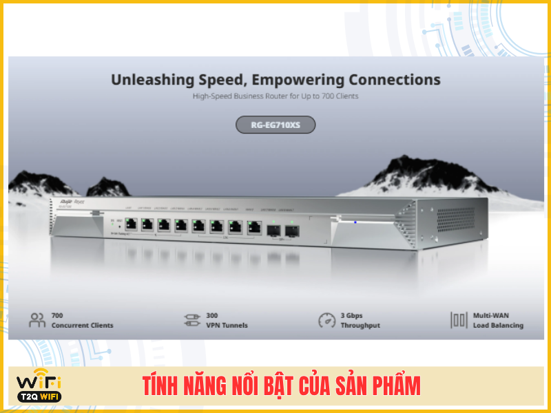 Về hiệu năng, RG-EG710XS có thể xử lý băng thông lên tới 3Gbps và hỗ trợ khoảng 700 thiết bị truy cập đồng thời, đảm bảo hệ thống mạng hoạt động mượt mà ngay cả khi sử dụng các ứng dụng nặng như video, cloud hay hệ thống giám sát.