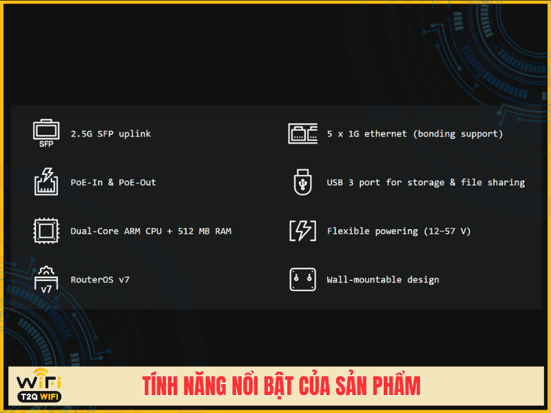 Hệ điều hành RouterOS v7 mang đến khả năng cấu hình cực kỳ linh hoạt: VLAN, firewall nâng cao, VPN, load balancing, traffic shaping… phù hợp cả người dùng kỹ thuật lẫn doanh nghiệp nhỏ.