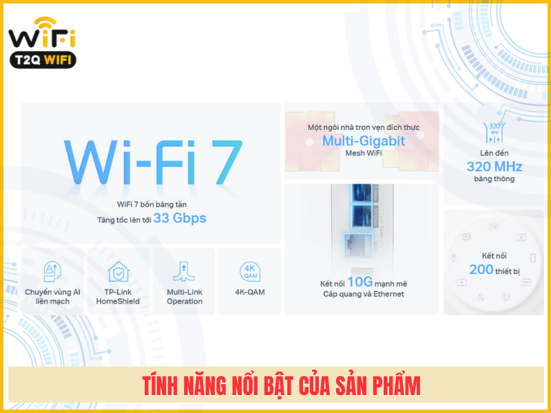 | Tính năng Wi-Fi nâng cao | Multi-Link Operation (MLO) 320 MHz Channel 4K-QAM Multi-RUs Hỗ trợ Alexa & Google Assistant |