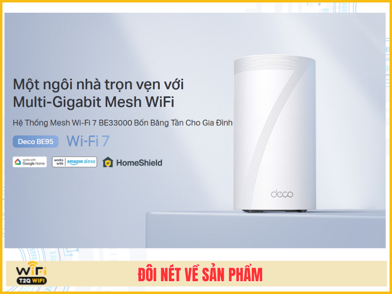 TP-Link Deco BE95 mang đến chuẩn Wi-Fi 7 BE33000 mạnh mẽ, phủ sóng toàn nhà với Mesh AI thông minh, sẵn sàng cho mọi nhu cầu kết nối tốc độ cao hôm nay và cả tương lai. Hãy cùng T2QWIFI tìm hiểu thêm về sản phẩm này qua bài viết dưới đây bạn nhé!!!