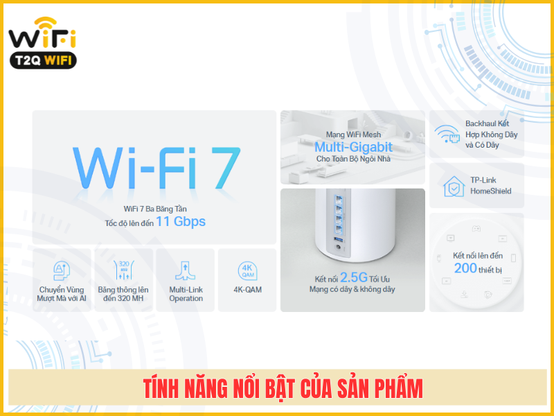| Tính năng nâng cao | Multi-Link Operation (MLO)Kênh 320 MHz4K-QAMMulti-RUsHỗ trợ Alexa & Google Assistant |