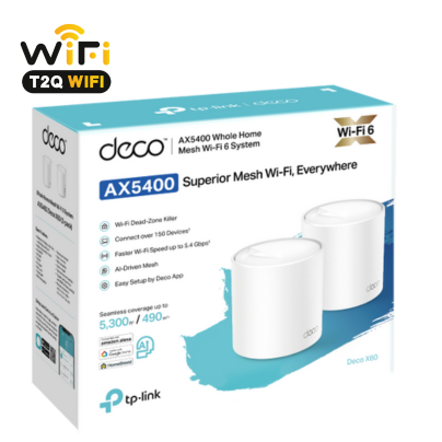 T2QWIFI » WiFi chuyên dụng - Chịu Tải Cao » TP-Link » Bộ thu phát sóng TP-Link Deco X60 AX5400 Mesh Wi-Fi 6 (2-pack)