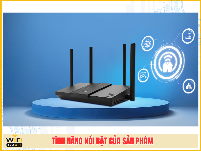 Bên trong, router được trang bị vi xử lý 4 nhân cùng 256MB RAM, cho khả năng xử lý ổn định khi có nhiều thiết bị truy cập đồng thời, phù hợp với gia đình đông người hoặc không gian làm việc nhỏ . Hệ thống 4 anten ngoài kết hợp Beamforming giúp tăng cường vùng phủ sóng, hạn chế điểm chết WiFi trong nhà.