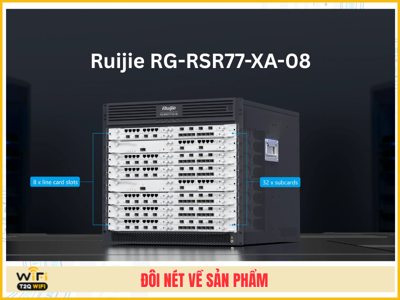 Ruijie RG-RSR77-XA-08 là dòng router lõi đa dịch vụ cao cấp được thiết kế dành cho những hạ tầng mạng quy mô lớn, nơi hiệu năng, khả năng mở rộng và độ ổn định là yếu tố sống còn. Thiết bị sở hữu kiến trúc phần cứng mạnh mẽ với thiết kế modular gồm 8 khe line-card và hỗ trợ tối đa 32 subcard, cho phép bổ sung linh hoạt các module GE, 10GE và 100GE tùy theo nhu cầu phát triển của hệ thống. Nhờ đó, router dễ dàng đáp ứng những yêu cầu mở rộng băng thông trong tương lai mà không cần thay đổi toàn bộ kiến trúc mạng, giúp tối ưu chi phí đầu tư và duy trì tính liên tục trong vận hành.