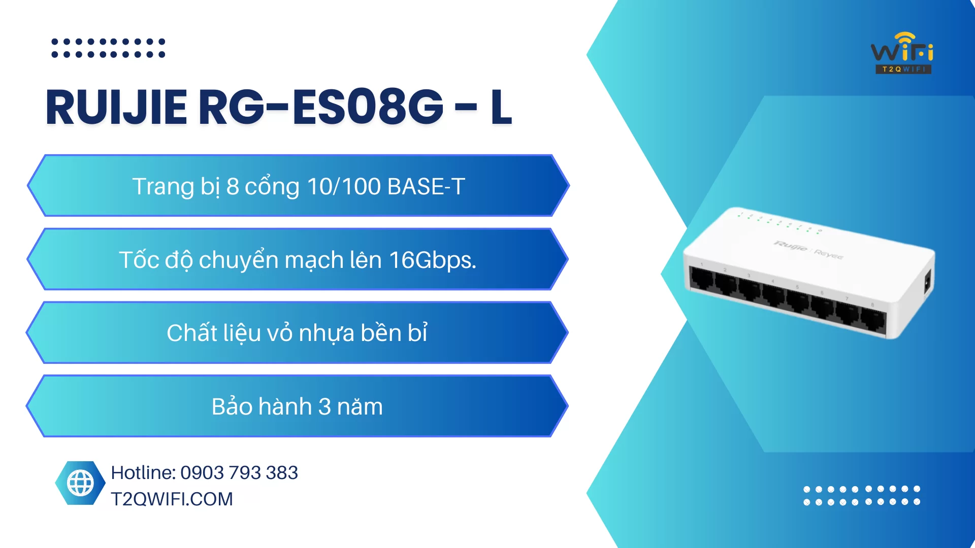 Hãy cùng T2QWIFI điểm qua những ưu điểm vượt trội của thiết bị chuyển mạch Ruijie RG-ES08G-L